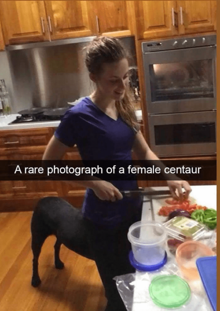 A perfectly timed kitchen photo makes it look like a woman has the body of a horse. A simple alignment transforms her into a mythical creature.