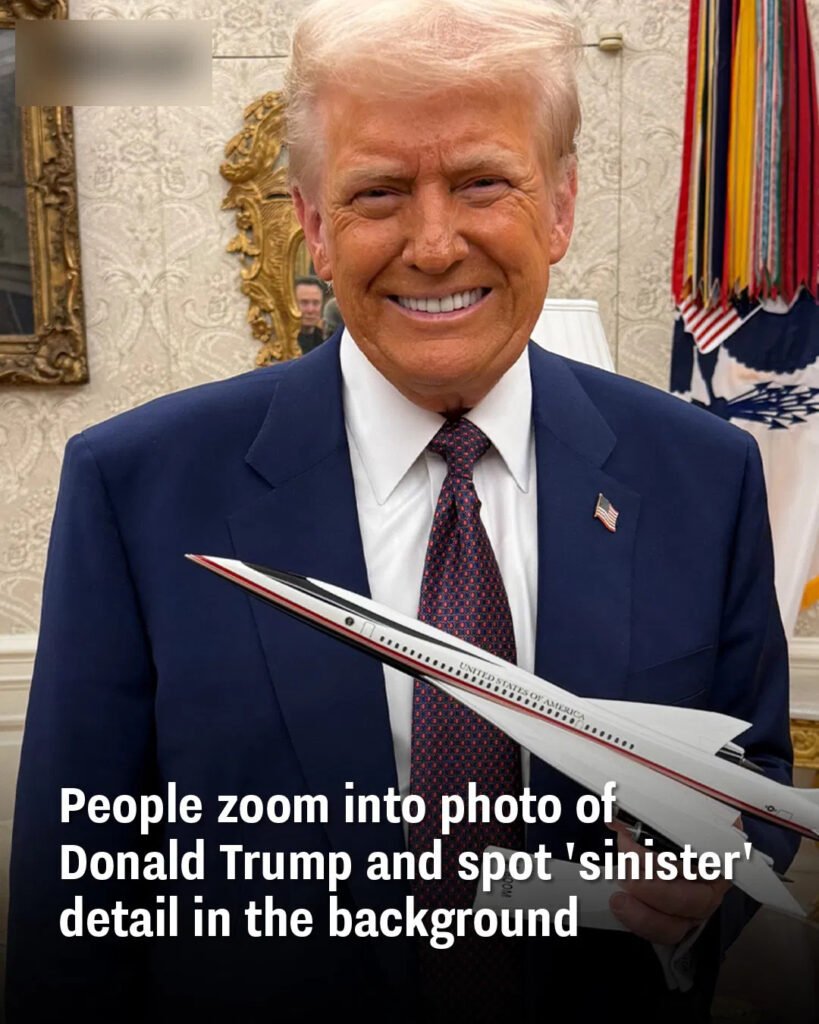 Social media users noticed someone lurking behind President Donald Trump in the pic A photo of President Donald Trump gripping …